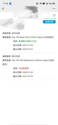 发现电池鼓包,想查询一下电脑是否过保,但是不懂两个服务的保修含义