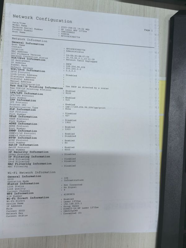 HP Laser MFP 137fnw 无法连接无线,选择网络输入密码后,提示断开连接,无线灯仍然闪烁。多次尝试并更换网络也无法解决。