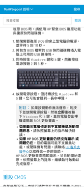 依照教學指示接上usb 長按windows鍵+B 然後按開機鍵1~3秒後放開 windows鍵B鍵不放.......  結果還是沒有進入更新bios的畫面  usb插槽是有訊號因為我接上電競鍵盤的時候本身按鍵的字會亮 但是鍵盤的右上方那三個指示燈就沒有亮了